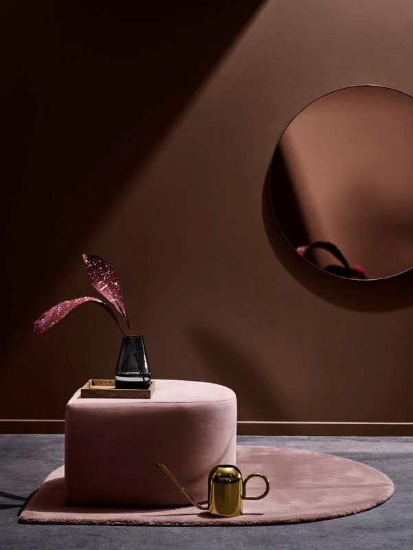 Le miroir Circum du Danois AYTM attire le regard par sa forme parfaitement ronde, sa grande taille et sa surface teintée de rose. Circum constitue un miroir élégant dans un dressing ou un ajout captivant à toute décoration.
