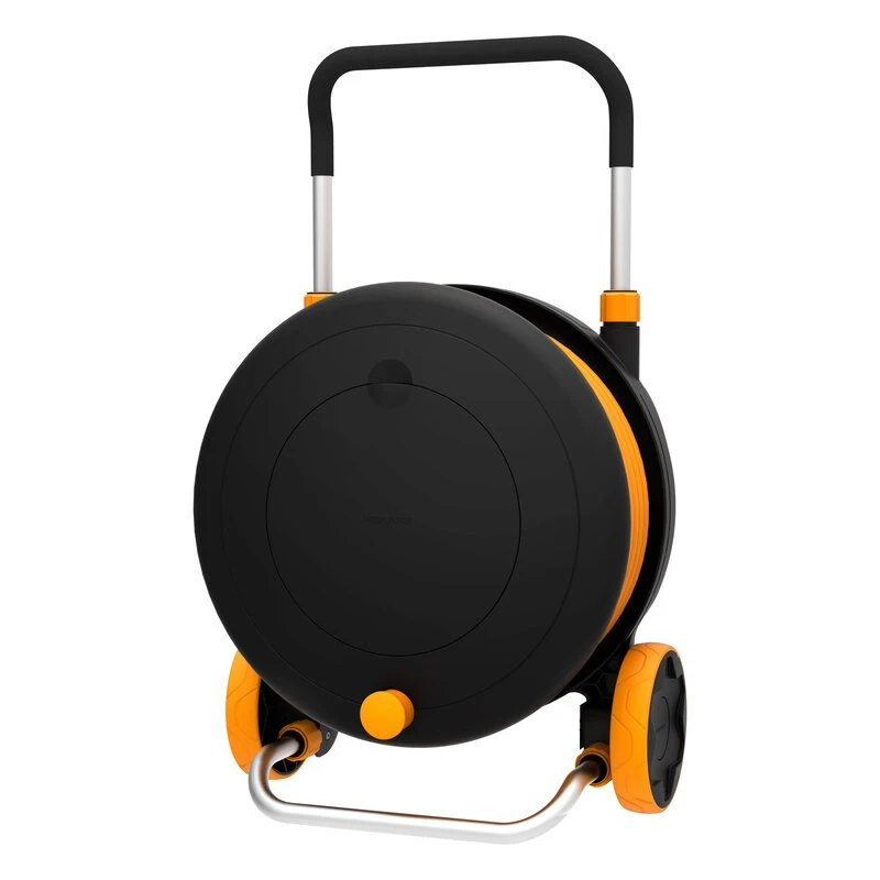 Le dévidoir sur roues Fiskars permet d’arroser les plantes de la terrasse ou du jardin de manière ordonnée et sans effort. Le chariot est équipé de roues matelassées et d’une poignée réglable qui permet de le déplacer facilement dans le jardin, et d’un dévidoir tournant à 360 degrés qui élargit considérablement la zone d’arrosage. Le chariot peut être placé à la fois verticalement et horizontalement, ce qui facilite également le stockage du dévidoir sur roues.
