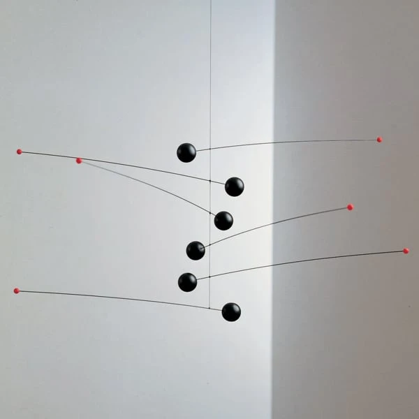 Futura est le premier mobile conçu par Ole Flensted et a été présenté en 1970. Des barres d’éléments légers et lourds en tension dynamique suggèrent six planètes avec leurs lunes.