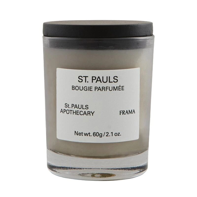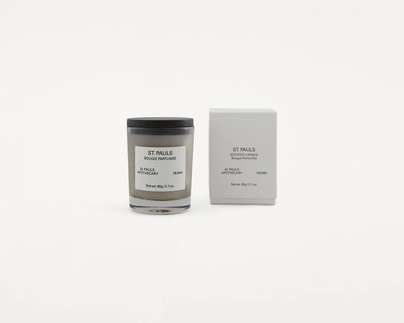 La bougie parfumée St. Pauls de Frama s’inspire de la boutique d’exposition de Frama située dans un lieu historique qui abritait autrefois une apothicairerie appelée St. Pauls Apotek. Ce parfum capture véritablement l’essence de la marque, à la fois frais et complexe, mais aussi nostalgique et réconfortant. Le parfum est un mélange terreux d’herbes, d’épices et de bois avec des notes dominantes de citronnelle, de coriandre, de bois de santal de Mysore et de bois de cèdre.
