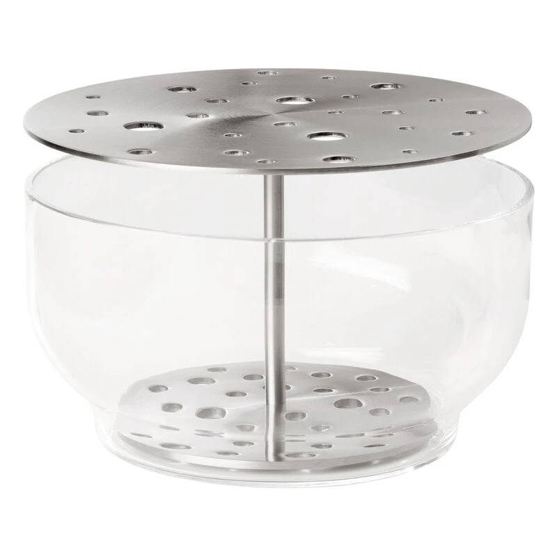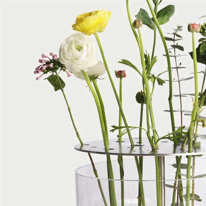 Les vases Ikebana de Fritz Hansen, conçus par Jaime Hayón, ont été inspirés par l’art traditionnel japonais de composition florale. L’idée de Jaime Hayón était de pouvoir profiter de la fleur dans son intégralité, tige comprise : ce vase en verre soufflé à la bouche, au design ingénieux, est orné d’un insert en acier qui peut être utilisé pour disposer les fleurs à sa guise. Vous pouvez choisir de créer un grand bouquet luxuriant ou de n’utiliser que quelques-uns des trous de l’insert en laiton.
