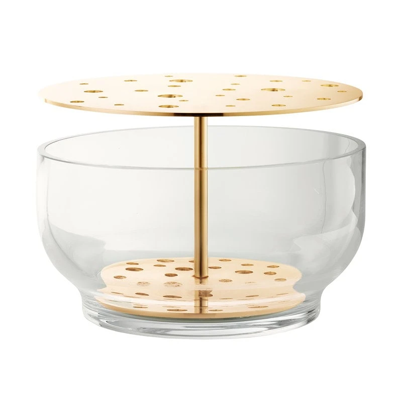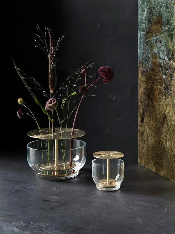 Les vases Ikebana de Fritz Hansen, conçus par Jaime Hayón, ont été inspirés par l’art traditionnel japonais de composition florale. L’idée de Jaime Hayón était de pouvoir profiter de la fleur dans son intégralité, tige comprise : au design ingénieux, ce vase en verre soufflé à la bouche est orné d’un insert en laiton qui peut être utilisé pour disposer les fleurs à sa guise. Vous pouvez choisir de créer un grand bouquet luxuriant ou de n’utiliser que quelques-uns des trous de l’insert en laiton.