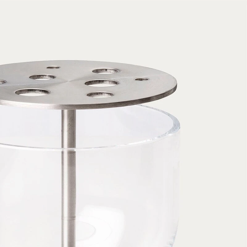 Les vases Ikebana de Fritz Hansen, conçus par Jaime Hayón, ont été inspirés par l’art traditionnel japonais de composition florale. L’idée de Jaime Hayón était de pouvoir profiter de la fleur dans son intégralité, tige comprise : ce vase en verre soufflé à la bouche, au design ingénieux, est orné d’un insert en acier qui peut être utilisé pour disposer les fleurs à sa guise. Vous pouvez choisir de créer un grand bouquet luxuriant ou de n’utiliser que quelques-uns des trous de l’insert en laiton.