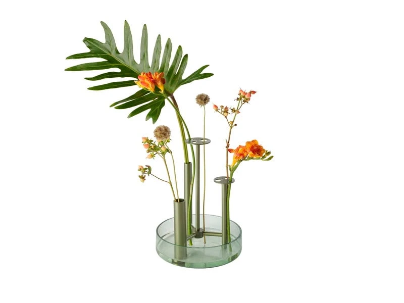 Le vase Ikeru de Fritz Hansen s’inspire de l’art japonais de la composition florale, l’ikebana. Conçu par Jaime Hayón, le vase Ikeru a une forme fascinante qui vous incite à faire preuve de créativité et à vous concentrer sur la disposition des fleurs, une à une : le vase se compose d’une base en verre vert forêt et d’un insert métallique dans lequel vous pouvez placer des fleurs, des branches et des graines à votre guise. Laissez s’épanouir le fleuriste qui sommeille en vous !