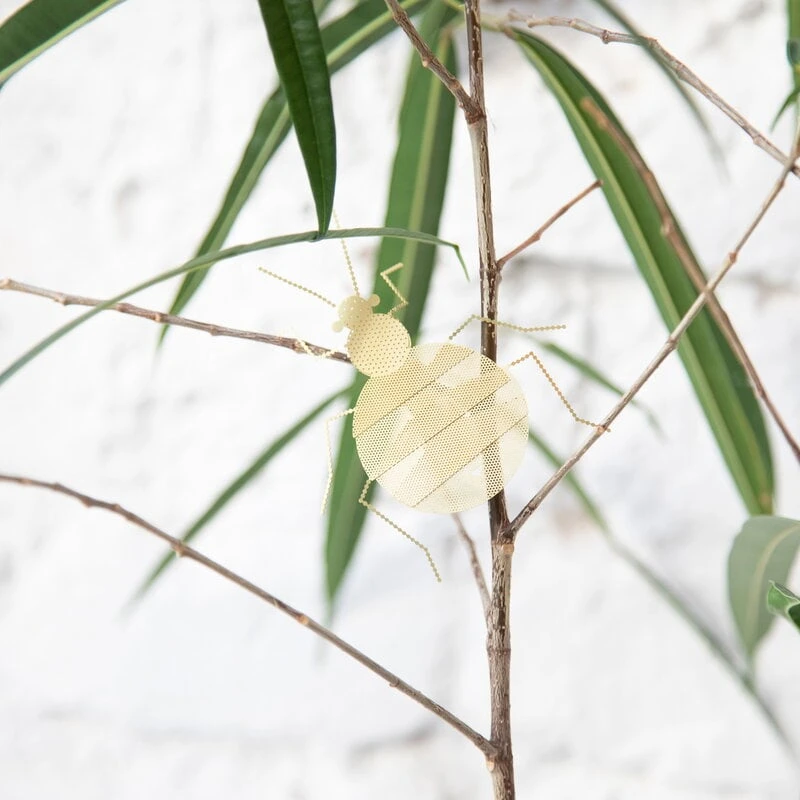 L’ornement Flatmates de Fundamental Berlin est un compagnon étonnamment sympathique bien qu’il soit un insecte. Fabriquée en laiton brillant, cette punaise chatoyante peut être disposée sur une table ou une étagère ou bien accrochée à une fenêtre ou à un arbre. Il est possible de fixer l’insecte sur un mur grâce à un crochet discret situé au dos de l’ornement. Les ornements Flatmates sont fabriqués par des personnes handicapées dans un atelier social à Berlin.
