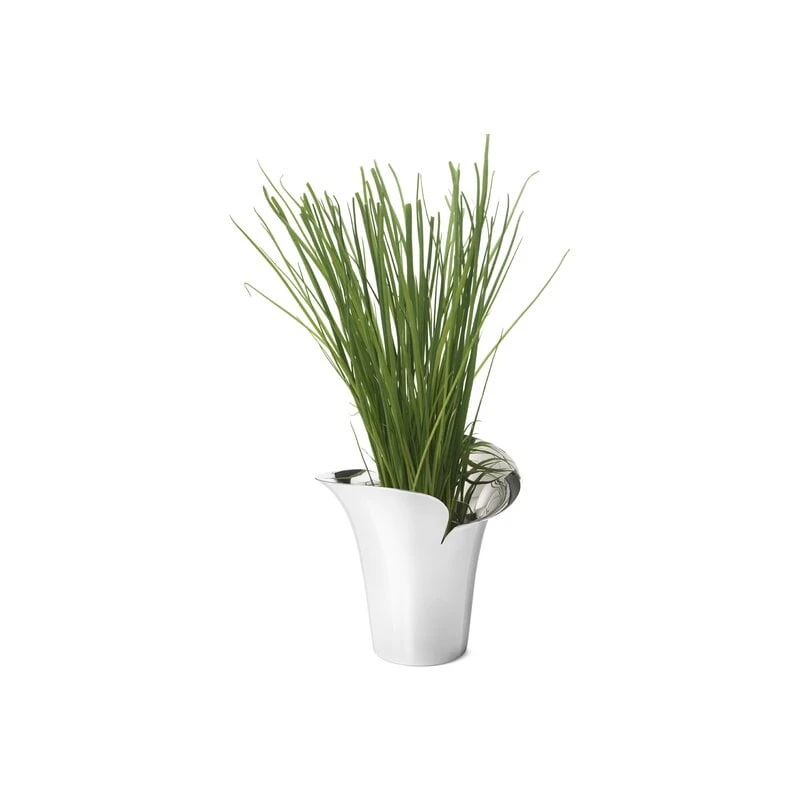 L’étonnant pot de fleurs Botanica de la collection Bloom de Georg Jensen a été conçu par la Danoise Helle Damkjær, à partir d’un design unique fait à la main dans de l’argile. La forme minimaliste et organique du pot de fleurs Botanica illustre une tendre fleur en pleine éclosion, créant un contraste intéressant avec l’intensité de l’austère acier poli miroir. Le pot de fleurs Botanica est un objet de décoration qui attire le regard, qu’il soit vide ou garni d’une plante luxuriante.