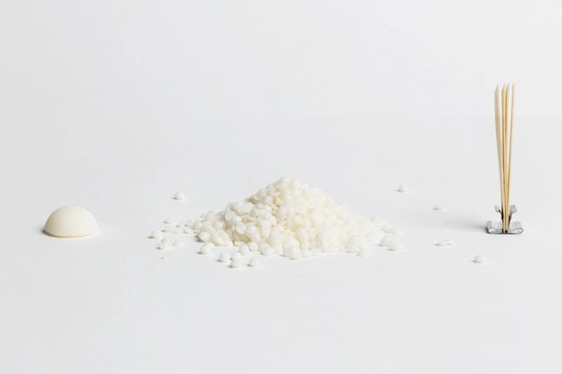 - Des gouttelettes de cire sans OGM (soja et colza)