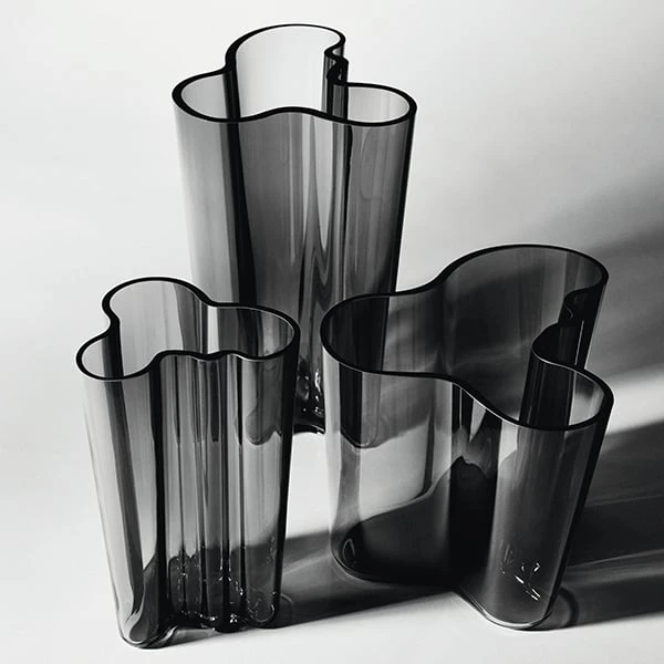Le vase Aalto d’Iittala est une icône de forme organique de la verrerie et du design finlandais. Alvar Aalto a créé le vase Aalto en différentes tailles et couleurs pour l’exposition universelle de Paris en 1937. La forme légendaire du vase Aalto est dérivée du paysage et des lacs finlandais. La forme a été réinterprétée depuis lors et il existe aujourd’hui une grande variété d’objets différents de la forme mondialement connue d’Aalto.