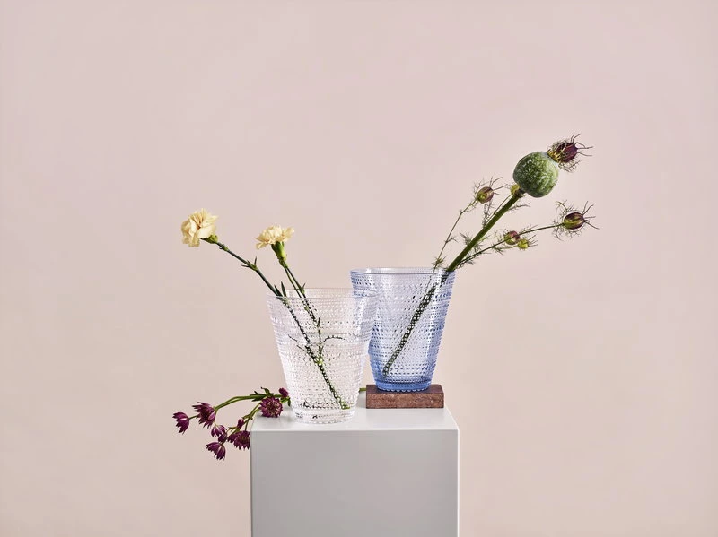 Le vase Kastehelmi d’Iittala fait partie de la collection en verre populaire conçue par Oiva Toikka. Décoré de bandes de bulles de verre, le vase Kastehelmi constitue un centre de table distinctif ou un bel objet décoratif sur un rebord de fenêtre ou une table d’appoint.