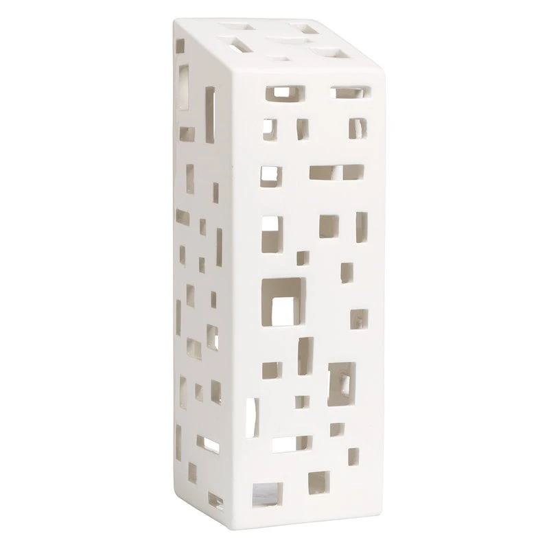 La lanterne High Building de la série Urbania de Kähler ressemble à un immeuble doté de fenêtres asymétriques et d’un toit incliné, qui lui donnent un aspect intéressant et original. La lanterne est ornée d’un magnifique vernis blanc.