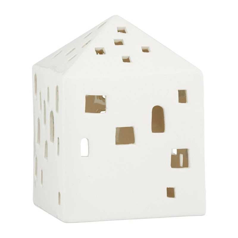 La lanterne Town House de la série Urbania de Kähler ressemble à un immeuble doté de fenêtres asymétriques et de puits de lumière, qui lui donnent un aspect intéressant et original. La lanterne est ornée d’un magnifique vernis blanc.