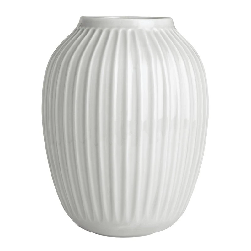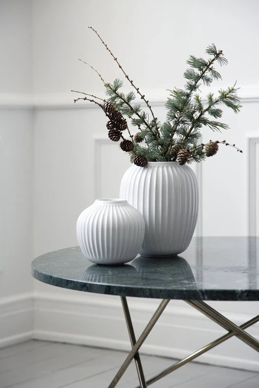 Le vase Hammershøi, conçu par Hans-Christian Bauer pour Kähler, fait partie d’une magnifique collection de céramiques portant le nom de l’artiste et céramiste Svend Hammershøi. Il a travaillé pour Kähler de 1893 à sa mort et ses grands vases et bols étaient souvent ornés de simples sillons verticaux. Le même motif décoratif se répète dans la collection intemporelle Hammershøi, qui convient aussi bien à un usage quotidien qu’à une ambiance festive.