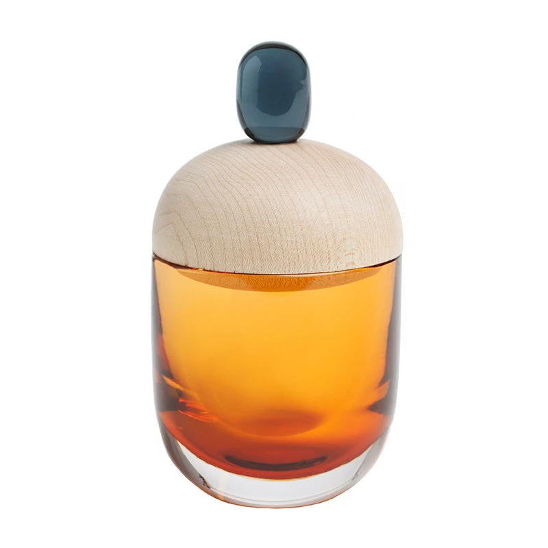 Les adorables boîtes Lyyli de Katriina Nuutinen associent les traditions du soufflage de verre et de l’artisanat du bois finlandais sous une forme charmante et moderne. En verre soufflé et coloré, la boîte est dotée d’un couvercle en bois rond, cerise sur le gâteau, d’un petit bouton en verre au coloris magnifique. L’association de bouleau clair et de verre brillant est charmante et ludique et elle est sublimée dans un ensemble de plusieurs boîtes différentes. Mesurant 6,5 cm de diamètre, les boîtes Lyyli peuvent être remplies de pastilles, d’accessoires en papier, de trombones, de bijoux et autres petits trésors.