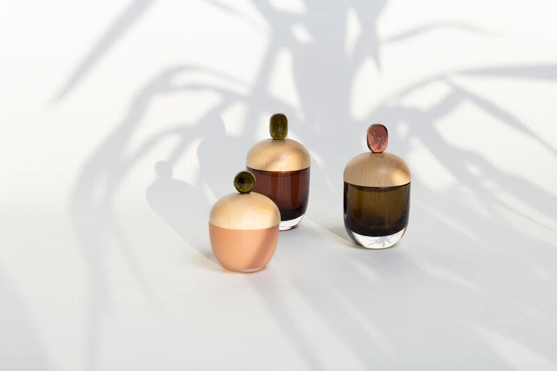Les adorables boîtes Lyyli de Katriina Nuutinen associent les traditions du soufflage de verre et de l’artisanat du bois finlandais sous une forme charmante et moderne. En verre soufflé et coloré, la boîte est dotée d’un couvercle en bois rond, cerise sur le gâteau, d’un petit bouton en verre au coloris magnifique. L’association de bouleau clair et de verre brillant est charmante et ludique et elle est sublimée dans un ensemble de plusieurs boîtes différentes. Mesurant 6,5 cm de diamètre, les boîtes Lyyli peuvent être remplies de pastilles, d’accessoires en papier, de trombones, de bijoux et autres petits trésors.