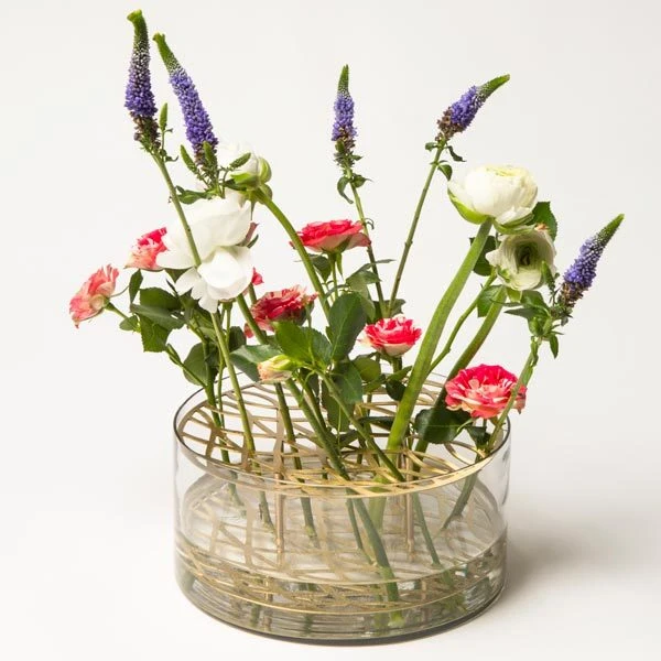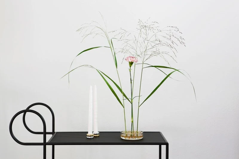 Le vase Äng de Klong, conçu par Eva Schildt, est un vase captivant qui permet de créer facilement des compositions florales. Le nom Äng, qui signifie « prairie » en suédois, fait référence à la façon dont les fleurs se tiennent dans le vase : la structure en laiton à deux niveaux sépare les tiges et les maintient en position verticale. Le magnifique cadre repose dans un bol de forme cylindrique en verre soufflé. Créez une prairie de fleurs urbaine dans votre maison avec le charmant vase Äng ou exposez-le comme un objet de design sculptural.