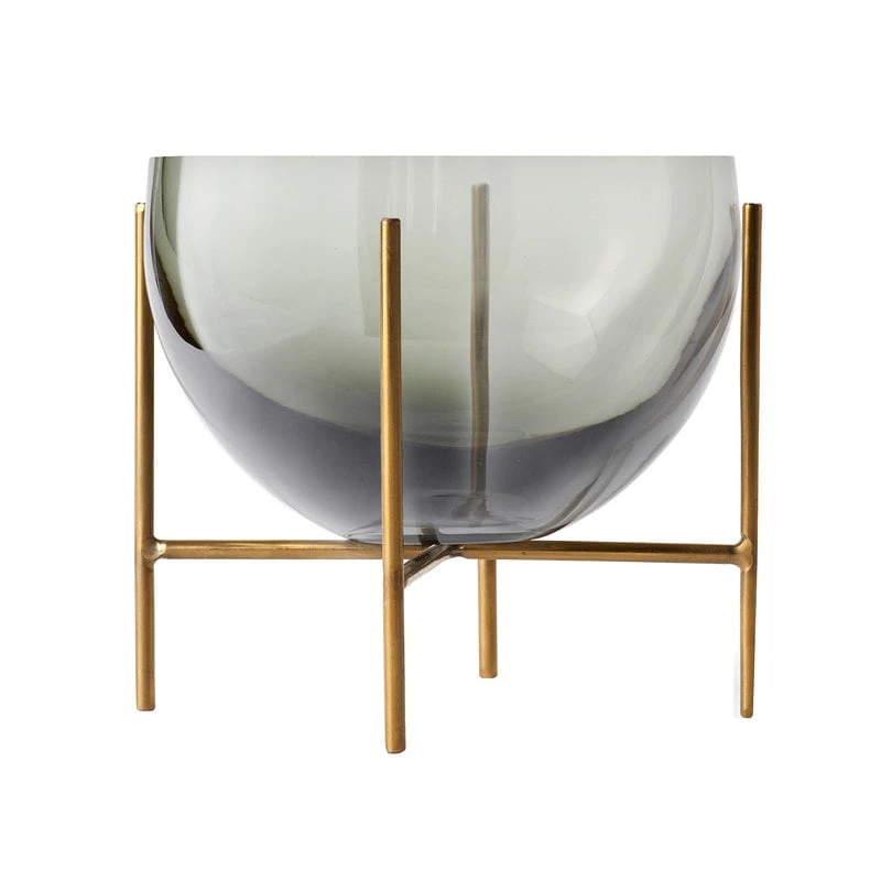 Le bol Échasse de Menu est la version contemporaine de Theresa Rand des élégants vases traditionnels en verre. Rand vise à créer des objets à la fois poétiques et fonctionnels. Échasse a un design en forme de goutte qui est inspiré des tubes à essai utilisés dans les laboratoires. Son nom français fait référence à la base en laiton élancée qui surélève le récipient en verre au-dessus du plateau de la table. Grâce à leur fond plat, les vases et bols Échasse peuvent également être utilisés sans leur base en laiton.