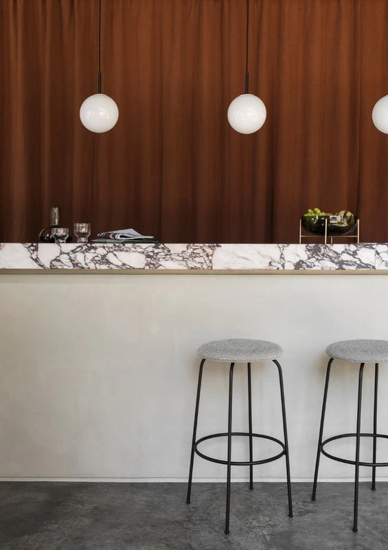 Le vase Échasse de Menu est la version contemporaine de Theresa Rand des élégants vases traditionnels en verre. Rand vise à créer des objets à la fois poétiques et fonctionnels. Échasse a un design en forme de goutte qui est inspiré des tubes à essai utilisés dans les laboratoires. Son nom français fait référence à la base en laiton élancée qui surélève le récipient en verre au-dessus du plateau de la table. Grâce à leur fond plat, les vases et bols Échasse peuvent également être utilisés sans leur base en laiton.