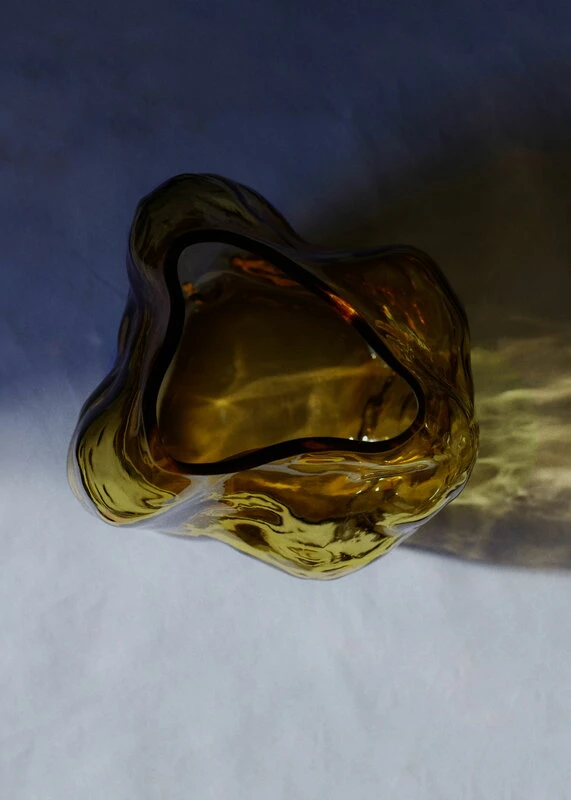 Le vase Blæhr de New Works est un chef-d’œuvre sculptural, où le beau design et l’artisanat professionnel se rencontrent. Conçu par Linnea Ek Blæhr, le vase est fait de verre dans un moule en bois par soufflage. Les petites bulles emprisonnées dans le verre et les indentations du moule en bois sur la surface du récipient lui donnent un aspect unique qui change de vase en vase. Si sa forme irrégulière crée un beau contraste avec les arrangements floraux qu’il accueille, le vase Blæhr est aussi un objet décoratif accrocheur lorsqu’il est vide.