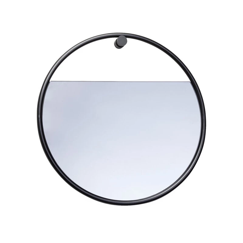 Le modèle Peek de Northern est un charmant miroir mural circulaire doté d’un cadre noir solide et saisissant. À l’intérieur du cadre, le verre miroir teinté argent ne remplit pas toute la surface : la partie ouverte sur un bord permet de révéler le mur derrière le miroir, comme si l’on voyait à travers. L’effet est encore plus convaincant lorsque le miroir Peek est accroché à un mur coloré.