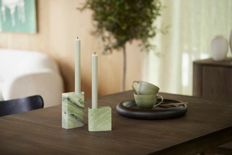 Les aspérités naturelles sont également visibles dans le matériau utilisé : le porte-bougie Monolith est fait de marbre, alors le motif, les couleurs et les veines de chaque pièce varient. Il s’agit d’une caractéristique du matériau naturel qui ne fait qu’ajouter à l’aspect personnel et unique du bougeoir. L’élégant porte-bougie Monolith attire l’attention à lui seul, mais un groupe de plusieurs chandeliers de couleurs, tailles et motifs différents sera tout aussi impactant.