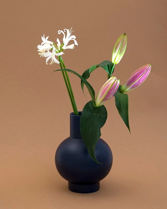Le vase Strøm de Raawii est de forme simple et sculpturale, idéal pour diverses compositions florales, créant un contraste amusant avec le caractère délicat des fleurs. Le vase minimaliste, avec sa base ronde allégée par un col cylindrique, est tout à fait ravissant, même sans fleurs.