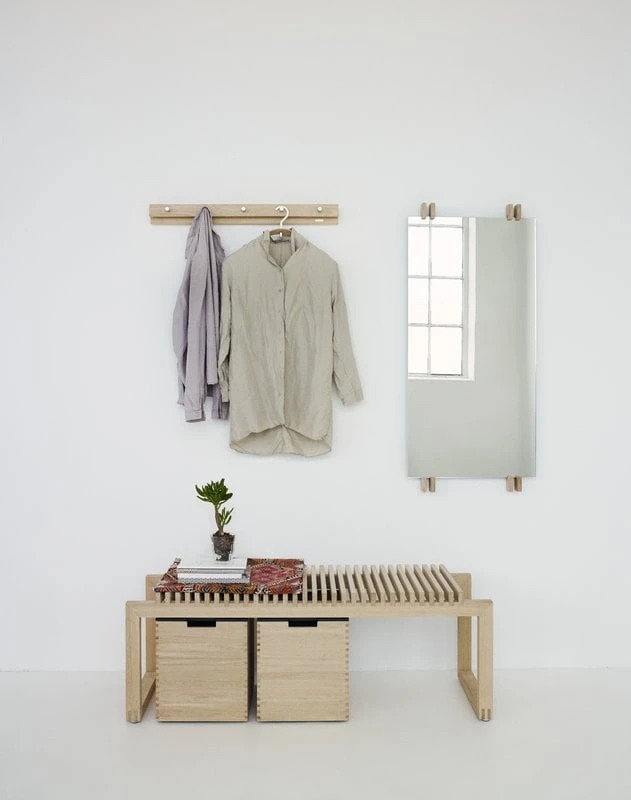 Le miroir Cutter de Skagerak fait partie d’une collection de meubles en bois conçue par Niels Hvass. Niels Hvass a conçu la première pièce de la collection en 1999 pour l’exposition Planken Ud au Designmuseum Danmark. Le design épuré du miroir Cutter se compose d’un simple miroir rectangulaire et de supports en bois. L’aspect intemporel du miroir Cutter convient aussi bien aux couloirs qu’aux chambres à coucher et il se marie parfaitement avec les autres pièces de la gamme Cutter.