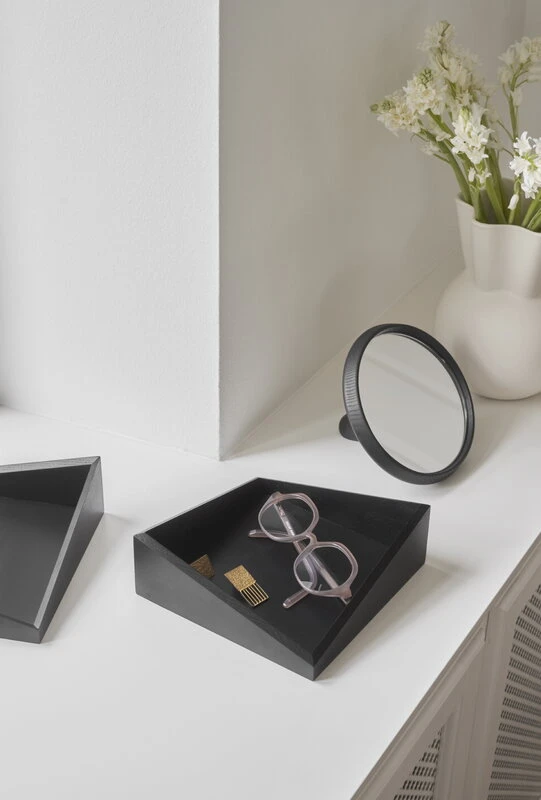 Le coffret Diplo de Spring Copenhagen est une boîte de rangement en bois habilement conçue par le Studio Baki. Fabriqué en frêne, ce coffret de forme carrée présente un design géométrique amusant : le haut et le bas ont été coupés en diagonale, de sorte que ses côtés sont de forme triangulaire. Diplo est parfait comme étui à bijoux, boîte à serviettes ou lieu de rangement pour toutes sortes de petits objets.
