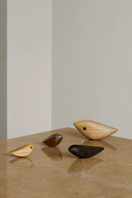 La collection Twirling Bird de Warm Nordic est une charmante collection d’oiseaux en bois conçue par Jacob Hermann. Les premiers oiseaux ont été créés dans les années 1950 à partir de morceaux de bois et de racines que Hermann avait trouvés sur une plage. Hermann s’est intéressé à ce que l’on pouvait faire avec ces petits bouts de bois, et comment il pouvait mettre en valeur la chaleur et l’âme typiques du matériau, même sur de minuscules objets comme ceux-ci. C’est de cette façon qu’est née une collection d’oiseaux en bois de différentes tailles, chacun avec son envergure et son style bien à lui, déterminés par le grain naturel du bois. Ces adorables oiseaux feront le bonheur des petits comme des grands, et chacun d’entre eux est livré dans une jolie boîte cadeau.