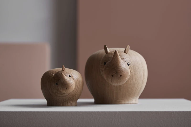 La figurine Rina Rhinoceros de Woud est un charmant rhinocéros en bois fabriqué en chêne massif, dont la tête peut être inclinée pour donner à la créature un air intrigué. Conçu par Steffen Juul, le modèle Rina s’inscrit dans la tradition des sculptures en bois expressives, très prisées des architectes et des designers danois. Avec ses yeux noirs profonds qui semblent vous contempler, la figurine Rina Rhinoceros vous apportera de la joie, qu’elle soit placée sur une étagère ou un buffet, ou offerte à quelqu’un de spécial.